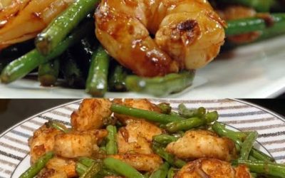 🛒 Ingrediencie: 🍤 300 g kreviet (očistené, bez škrupín) 🥬 250 g zelenej fazuľky 🧄 3 strúčiky cesnaku (nadrobno…