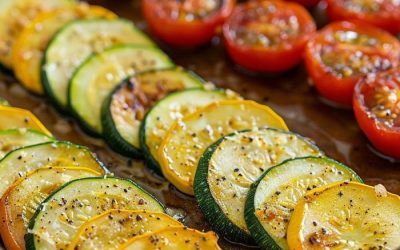 Cuketa, tekvica a paradajky s pečeným cesnakom, parmezánom a cuketou Táto cuketa, tekvica a paradajky s pečeným cesnakom, parmezánom a cuketou sú lahodnou a jednoduchou prílohou.