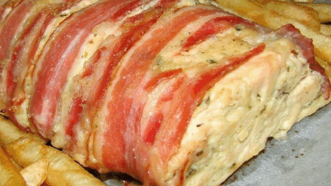 Hit rodinného obeda: kuracia roláda so syrom a smotanou v slaninkou.