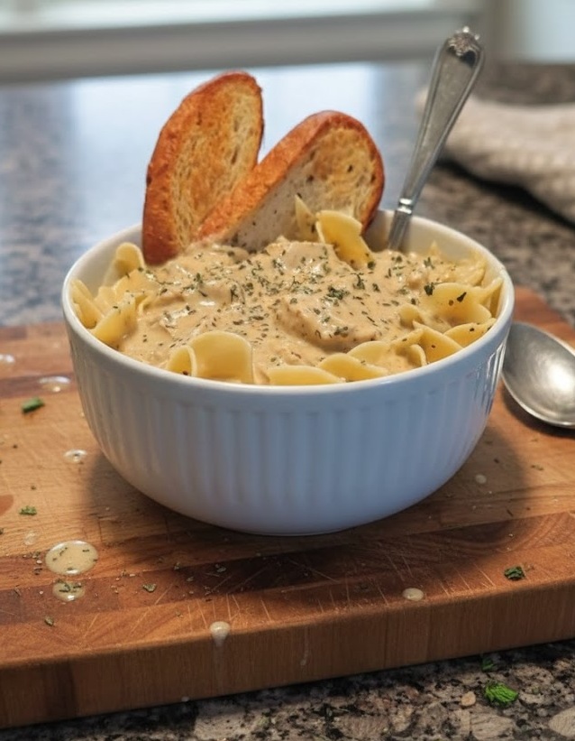 Krémová kuracia polievka Alfredo je útulná, hladká a plná chuti, kombinuje jemné kuracie mäso s chutnými cestovinami. Je ideálna na rodinné večere, večere počas pracovného týždňa alebo veľké stretnutia, ľahko sa pripravuje a zaručene poteší každého!
