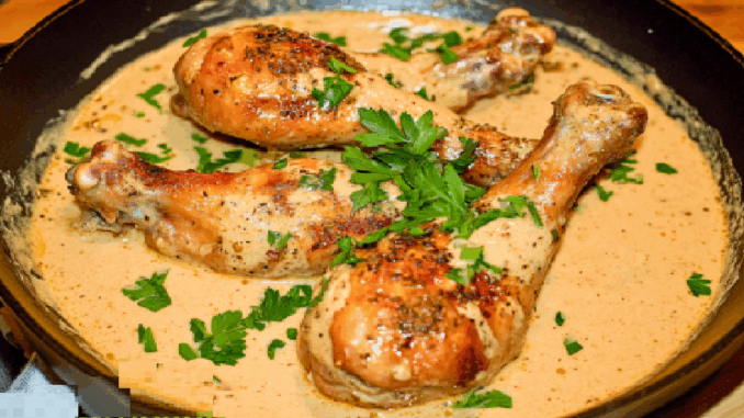 Na tuku, ktorý zostal na panvici, na silnom plameni opečieme kuracie stehná z oboch strán do zlatista (každú stranu len pár minút). Potom ich vyberieme a odložíme.