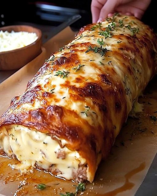 Lahodná syrová rolka s mletým hovädzím mäsom, pečená v rúre 30 minút
