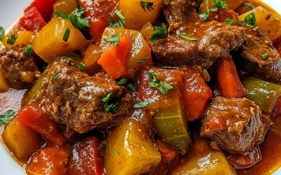 Ingrediencie: 800 g hovädzieho mäsa (plece alebo stehno), nakrájaného na kocky 3 stredné cibule (nadrobno nakrájané) 2 strúčiky cesnaku…