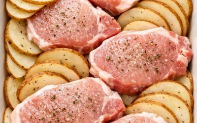 Naukladajte surové bravčové kotlety a zemiaky do zapekacej misy a získajte jedlo také chutné, že váš manžel bude prosiť o viac! Mäso zostane neuveriteľne šťavnaté.