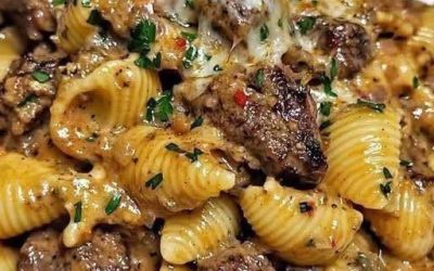 Ak hľadáte rýchle a uspokojujúce jedlo, ktoré kombinuje jemné kúsky steaku s krémovými syrovými mušľami, tento recept na kúsky steaku…