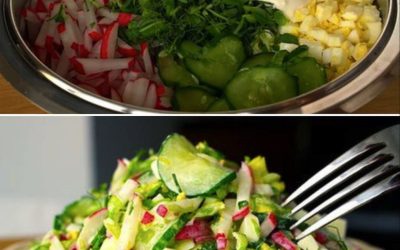 Ingrediencie 1/2 šalátovej misky z nastrúhanej čínskej kapusty, 1 uhorka , 1 paradajka , červená a zelená paprika (voliteľné) Vinegrette:…