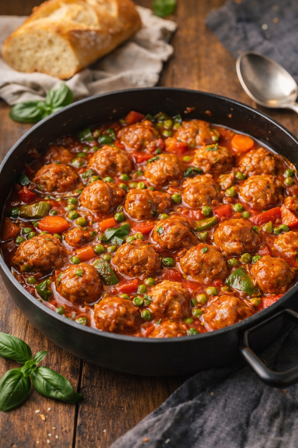 Pikantné mäsové guľky so záhradnou zeleninou sú pokrmom, ktorý dokonale spája pohodlie, tradíciu a výrazné chute. Toto jedlo je známe svojou bohatou omáčkou, jemnými mäsovými guľkami a farebnou zmesou zeleniny, ktorú umocňuje jemná, no výrazná štipľavosť vďaka kajenskému koreniu a cesnaku. Je to druh jedla, ktoré sa pomaly varí na sporáku a napĺňa dom neodolateľnou arómou.
