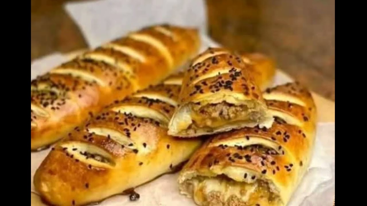 Plnka: Mozzarella syr, nakrájaná paprika, olivy a petržlenová vňať (môžete pridať aj uvarené mleté kuracie mäso).