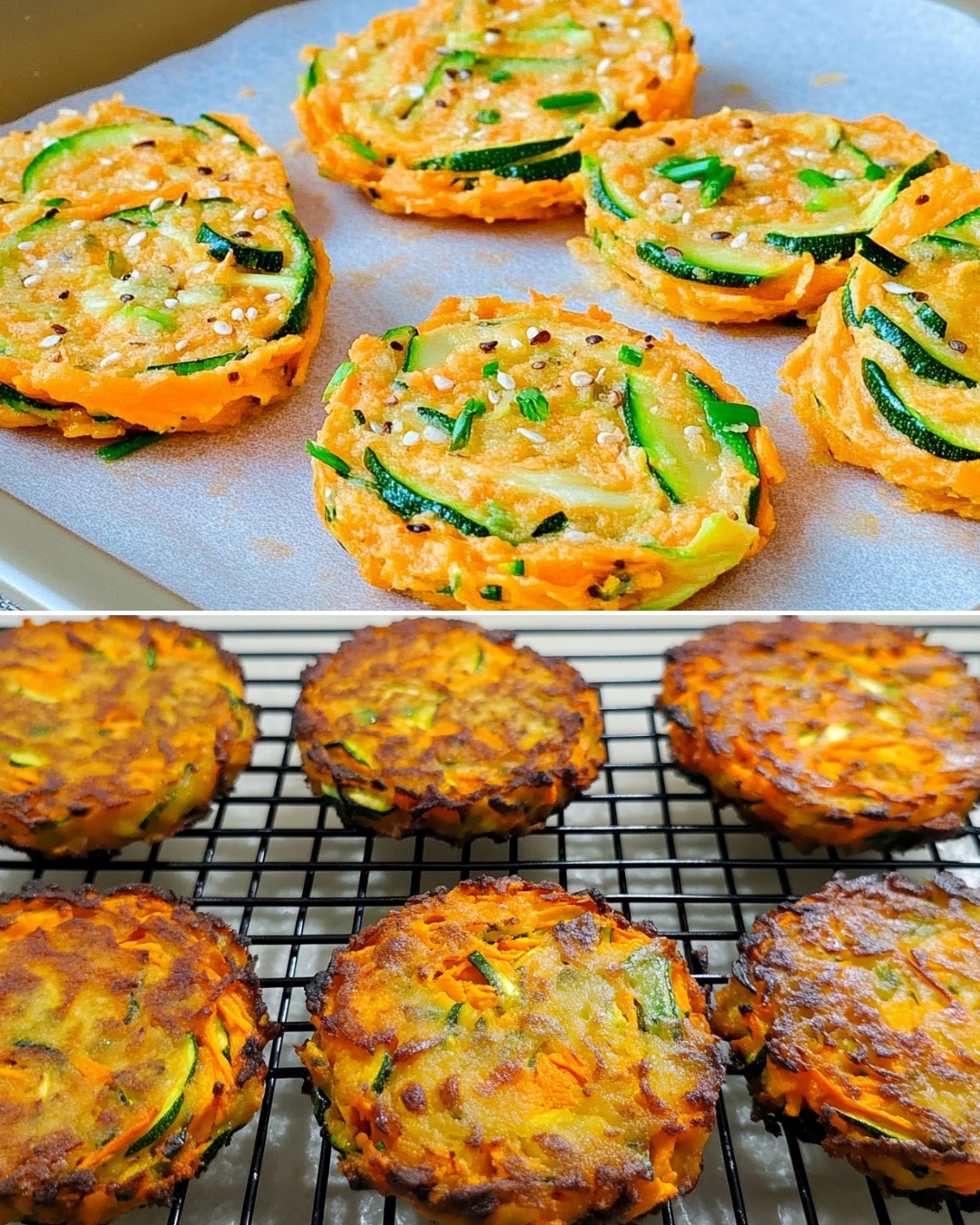 Tieto neuveriteľne lahodné sladké placky zo sladkých zemiakov a cukety ponúkajú zdravý nádych tejto raňajkovej klasike. Tieto chrumkavé zemiakové placky, ktoré kombinujú prirodzenú sladkosť sladkých zemiakov s jemnou sviežosťou cukety, sú ideálne na raňajky, brunch alebo ako príloha. Tajomstvo spočíva v správnom sušení a správnom množstve korenia, aby sa dosiahla zlatistá, chrumkavá kôrka a jemná, šťavnatá dužina. Ingrediencie