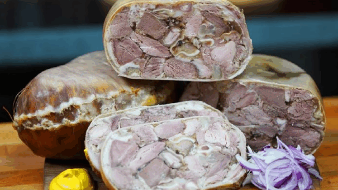 Tento recept pochádza z klasickej zabíjačkovej tradície. Tlačenka sa pripravuje z bravčových hláv, jazykov, uší, sŕdc a nôh, ktoré po dlhom varení vytvoria želatínovú šťavu a výnimočne plnú chuť. Plní sa do bravčových žalúdkov, necháva stuhnúť a často sa aj údi – výsledkom je lahodná domáca pochúťka, akú dnes nájdete len málokde.